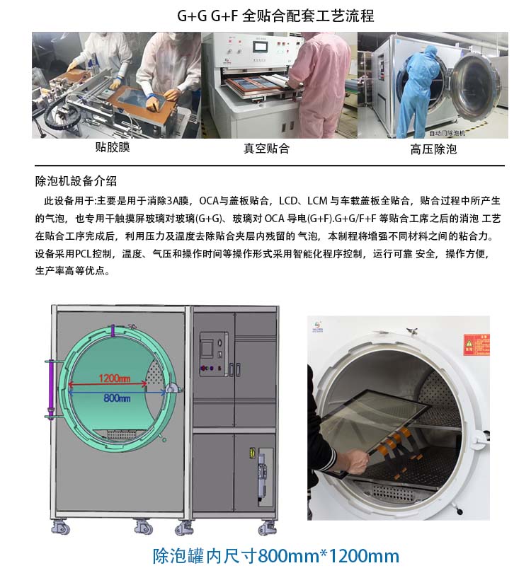 本设备为高压加热 ITO+CG、FILM+CG、CTP+LCD 模组脱泡机。