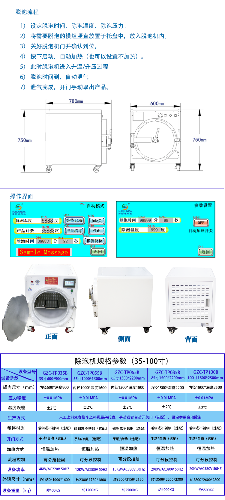 机器性能:以GZC-TP025B为例(其他尺寸可以咨询客户进行定制详情了解)