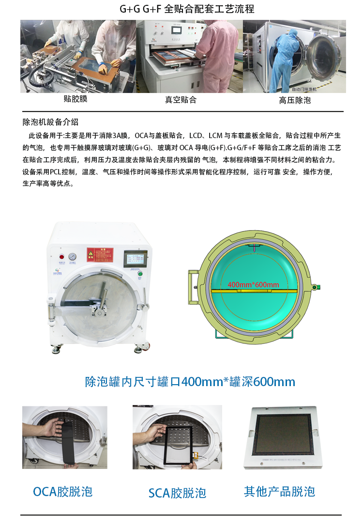本设备为高压加热 ITO+CG、FILM+CG、CTP+LCD 模组脱泡机。